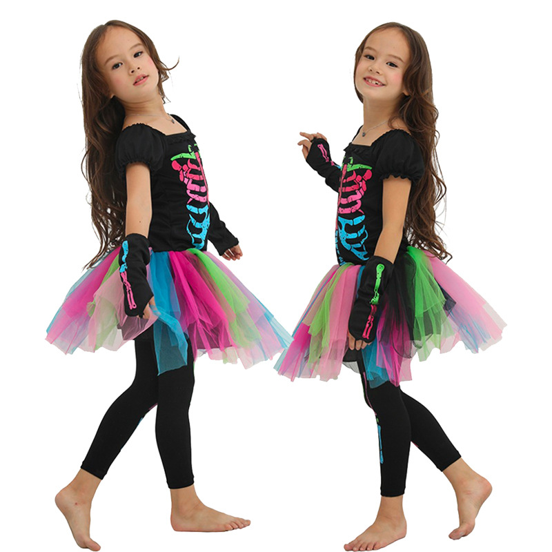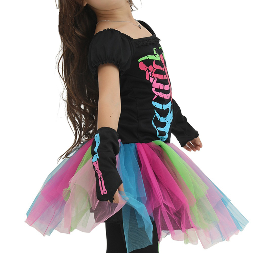💀 Kostüm für Kinder – Bunt in Rot, Pink & Schwarz