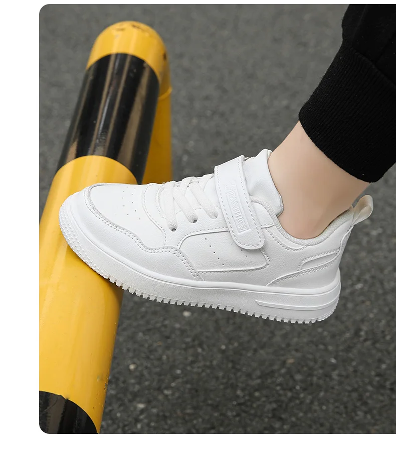 Die Sneaker überzeugen nicht nur durch ihr zeitloses Design, sondern auch durch ihre bequeme Passform und robuste Verarbeitung. Die flexible, rutschfeste Sohle sorgt für sicheren Halt auf allen Oberflächen, während das atmungsaktive Material für frische Füße sorgt, auch an langen Tagen. Kombiniert mit ihrem minimalistischen Look sind diese Schuhe sowohl für aktive Kinder als auch für modebewusste junge Trendsetter eine hervorragende Wahl.