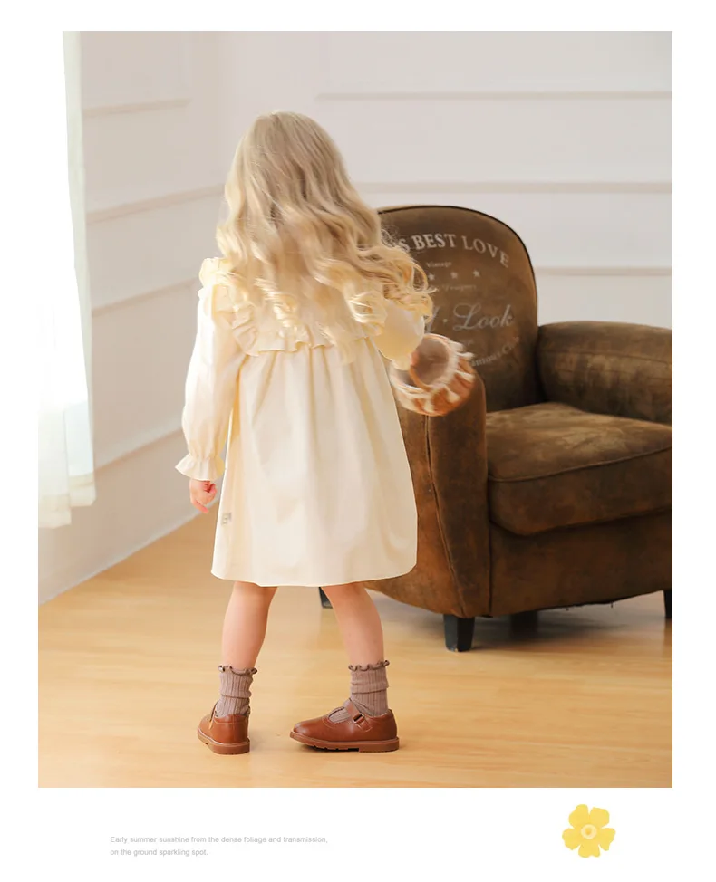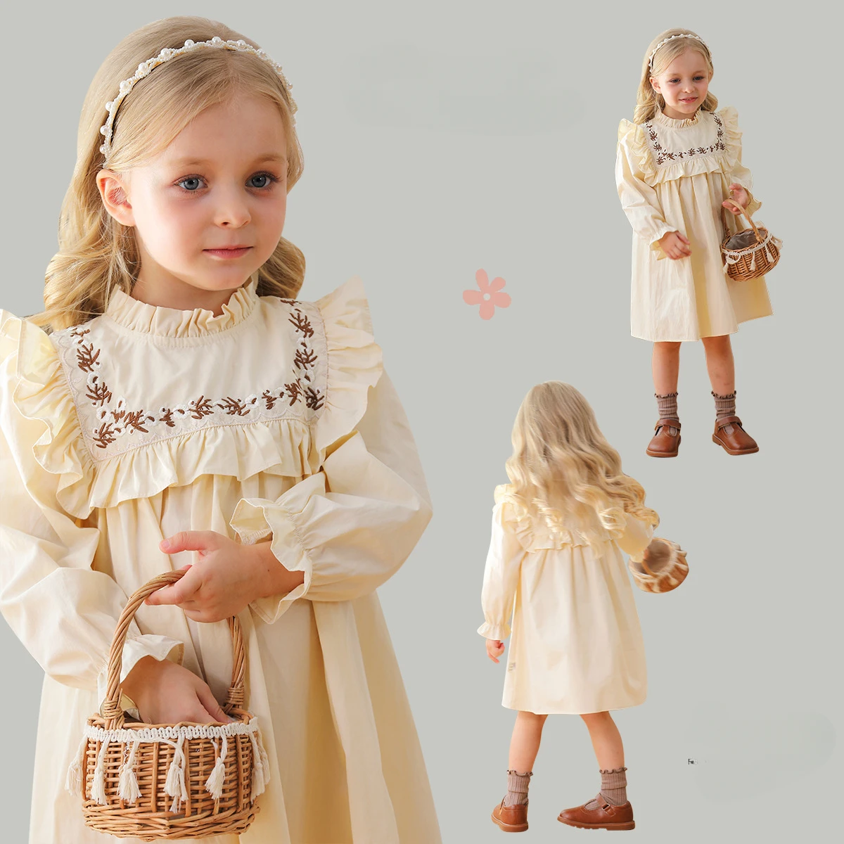 Dieses bezaubernde Mädchen Kleid kombiniert klassische Eleganz mit modernem Stil. Mit filigraner Blumenstickerei und zarten Lotusblatt-Spitzenakzenten ist dieses Kleid perfekt für den Herbst, festliche Anlässe oder als Brautkleid für junge Prinzessinnen. Der Standkragen und die langen Ärmel machen es zu einem idealen Outfit für kühleres Wetter, während der verspielte Schnitt und die hochwertige Verarbeitung Ihrem Kind ein besonderes Gefühl verleihen.