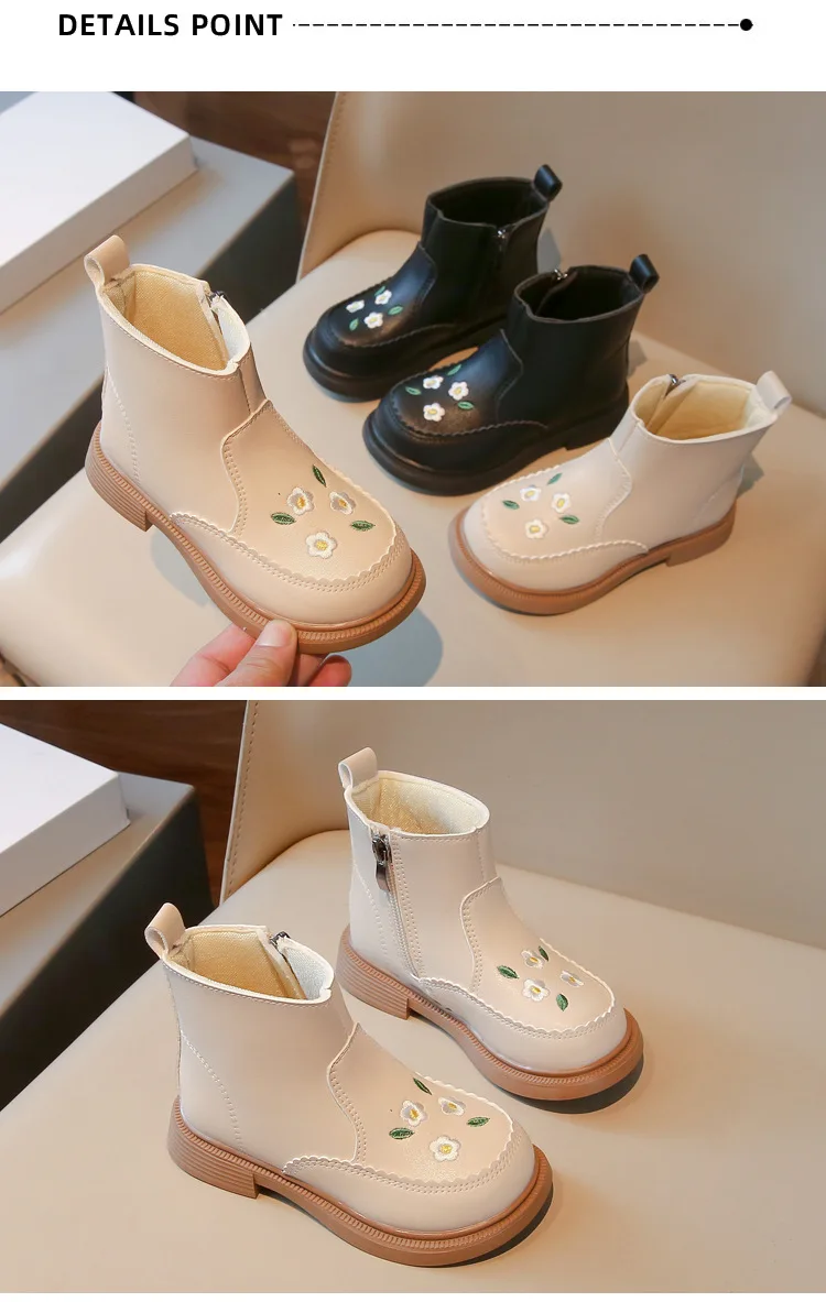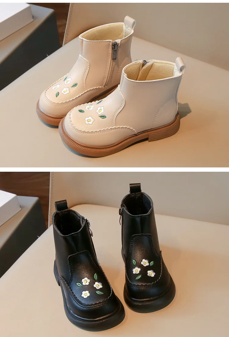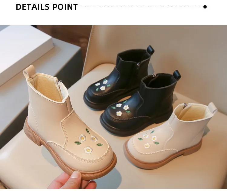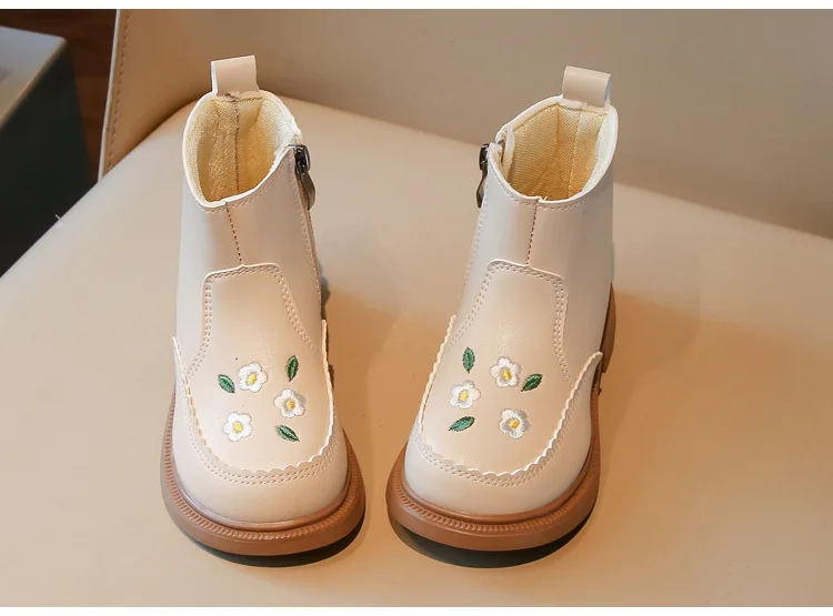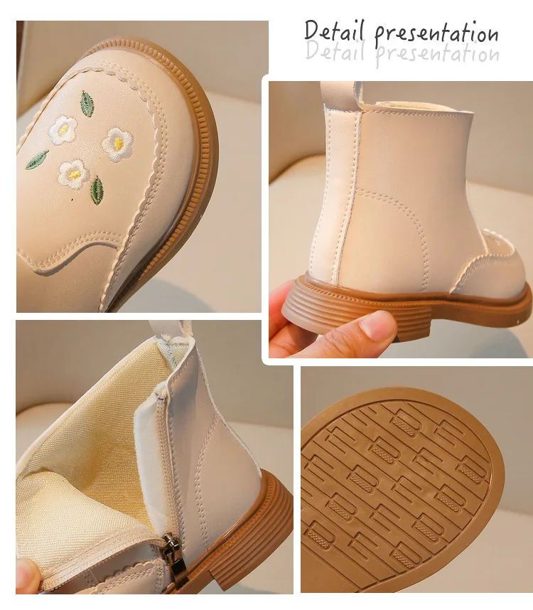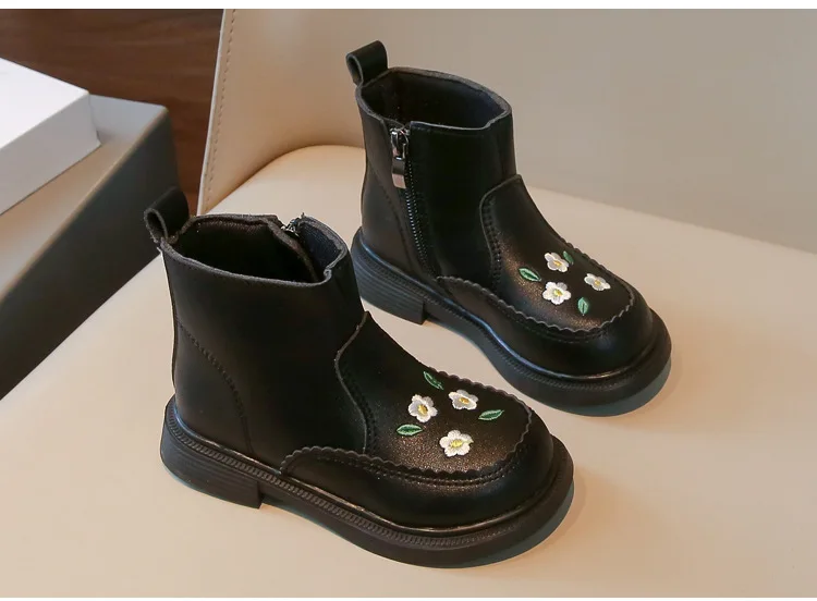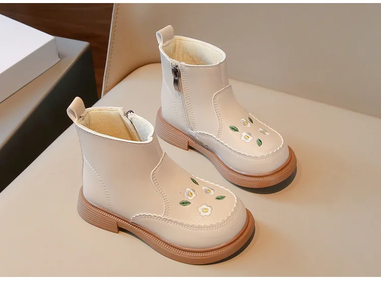 Diese eleganten Kinder Boots kombinieren Komfort und Stil in einem. Hergestellt in hochwertiger Lederoptik, bieten die Boots sowohl Haltbarkeit als auch einen besonders edlen Look. Das dezente Blumenmuster in Schwarz, Weiß und Beige sorgt für einen modernen und eleganten Touch, der jedes Outfit Ihres Kindes aufwertet. Diese Boots sind perfekt für den Alltag, ob für die Schule, Freizeit oder besondere Anlässe – sie passen sich mühelos verschiedenen Looks an.