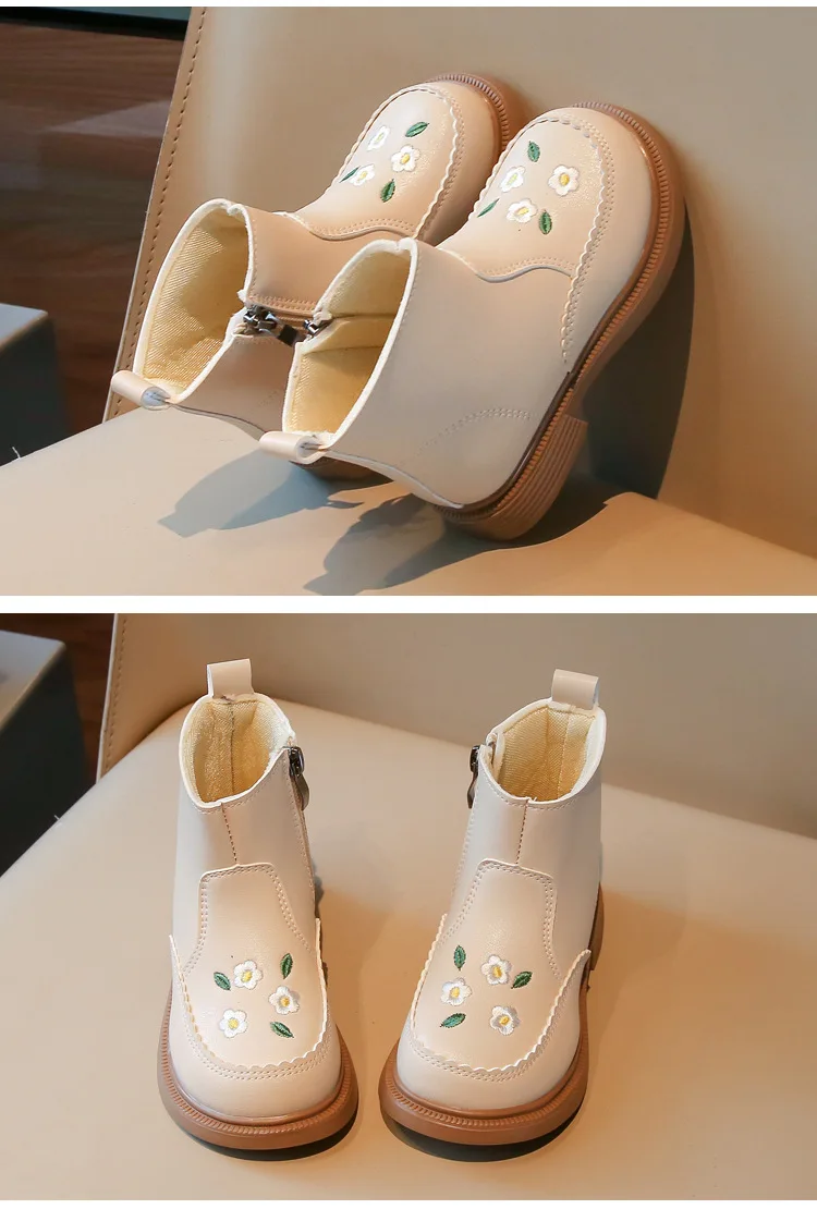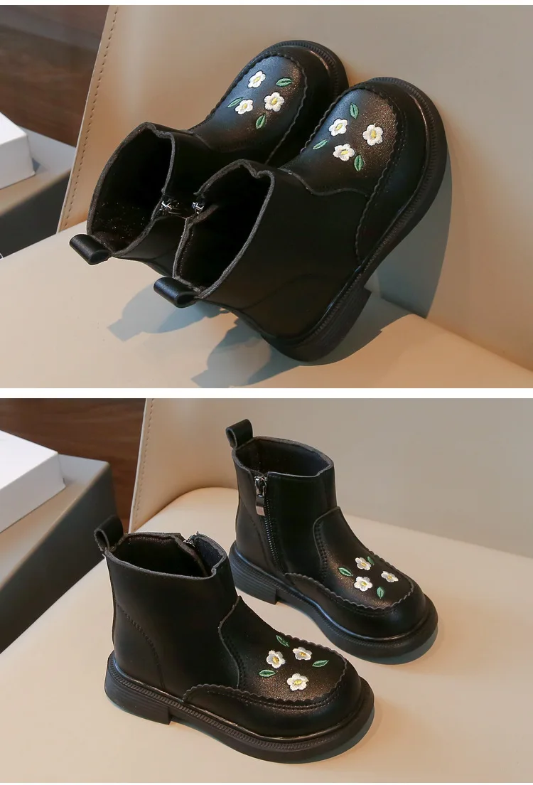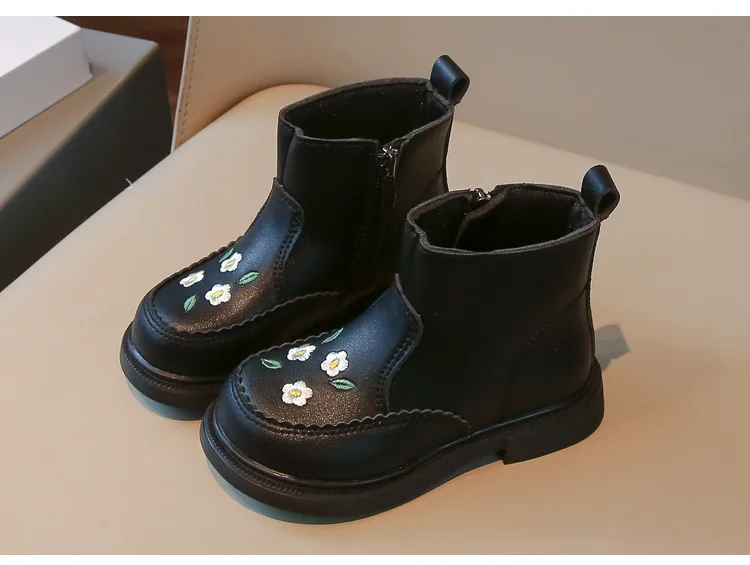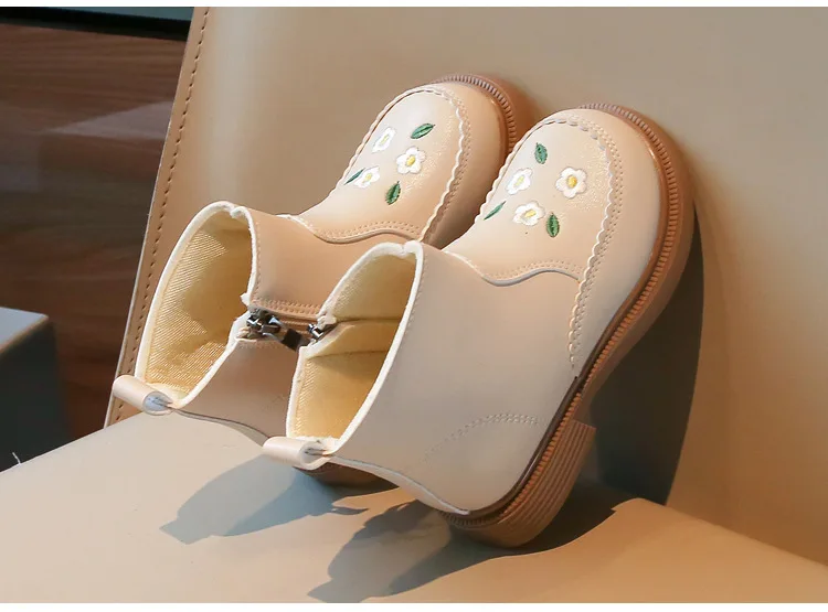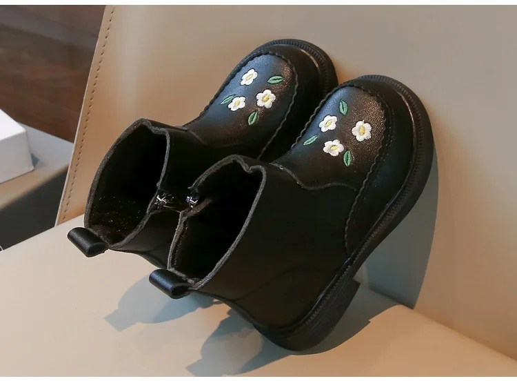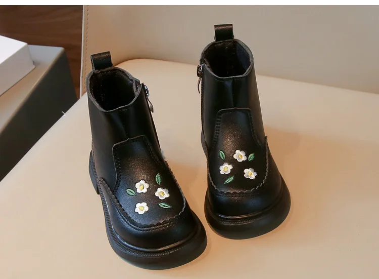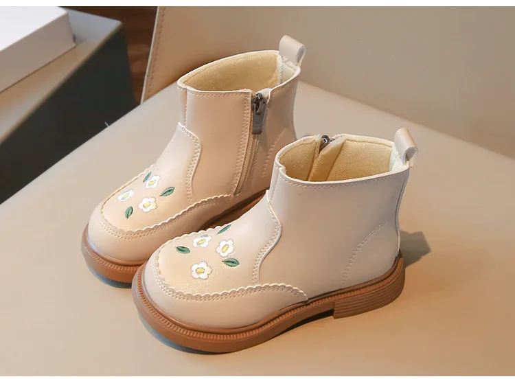 Diese eleganten Kinder Boots kombinieren Komfort und Stil in einem. Hergestellt in hochwertiger Lederoptik, bieten die Boots sowohl Haltbarkeit als auch einen besonders edlen Look. Das dezente Blumenmuster in Schwarz, Weiß und Beige sorgt für einen modernen und eleganten Touch, der jedes Outfit Ihres Kindes aufwertet. Diese Boots sind perfekt für den Alltag, ob für die Schule, Freizeit oder besondere Anlässe – sie passen sich mühelos verschiedenen Looks an.
