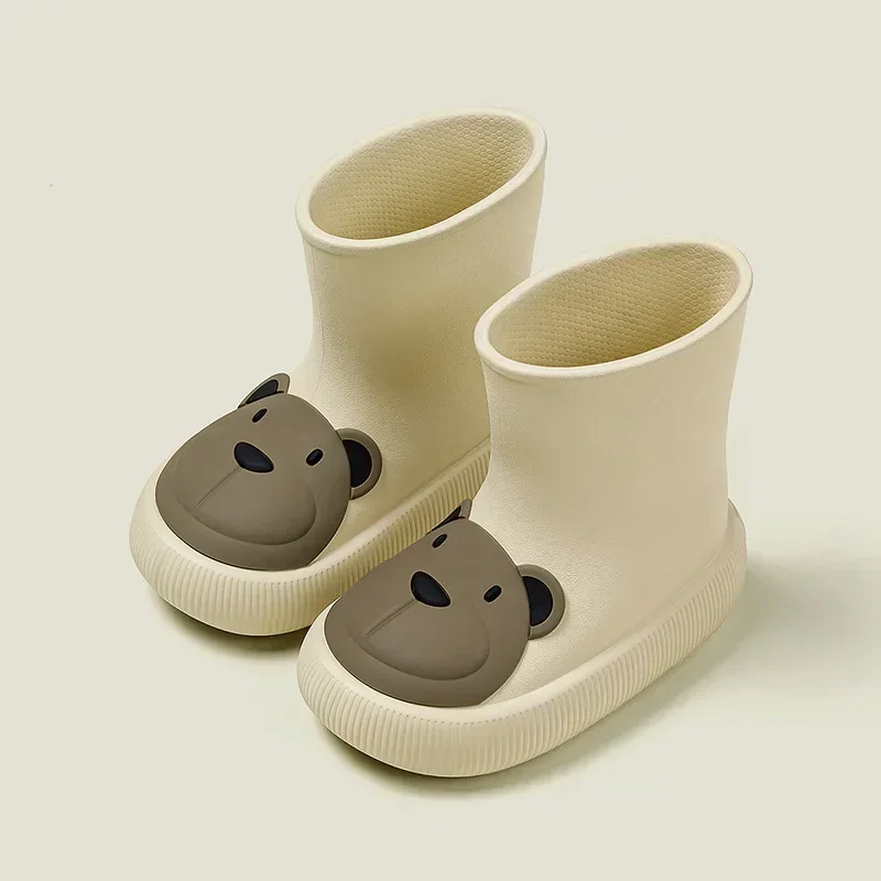 Niedliche Regenschuhe für Kinder – Cartoon Design mit Hase und Bär in Weiß, Gelb oder Rosa