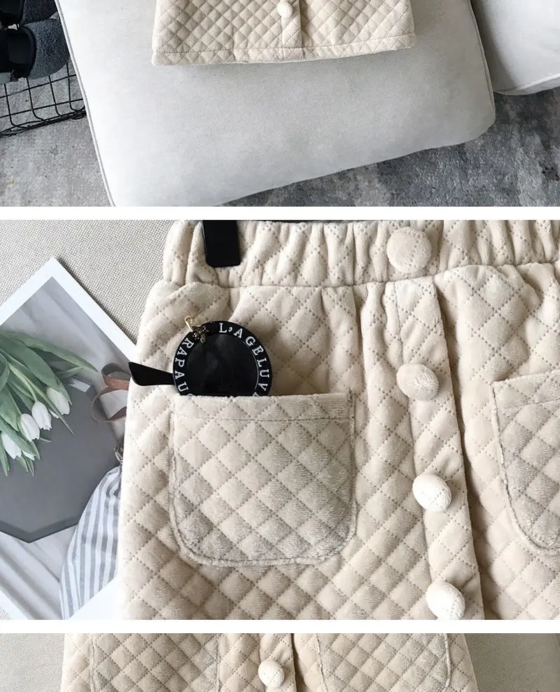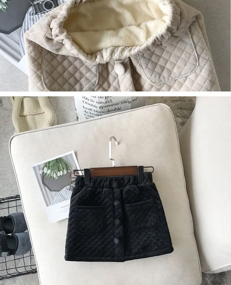 „Dieser trendige, kurze Rock für Mädchen besticht durch einen modernen Schnitt und praktische Knöpfe vorne. Er ist perfekt für die kalte Jahreszeit und sorgt für ein warmes und stilvolles Outfit. Der Rock lässt sich vielseitig kombinieren, ob mit einer Strumpfhose oder Leggings, und bietet optimalen Komfort, während Ihr Kind modisch bleibt.