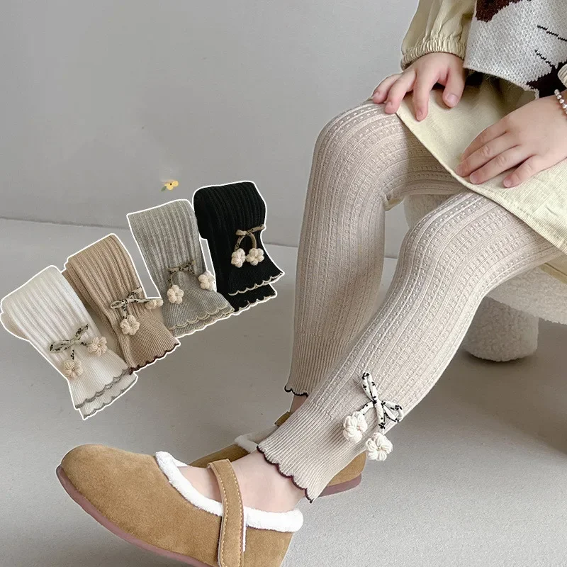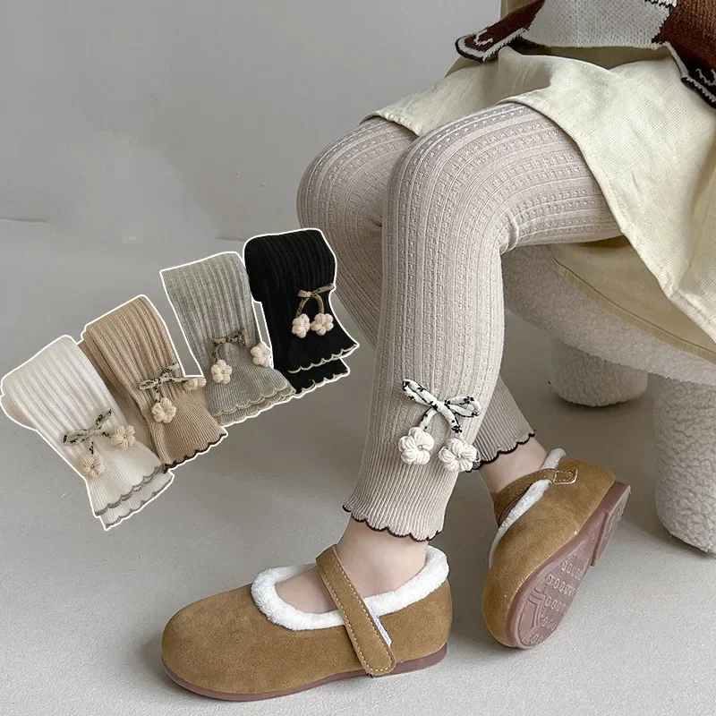 Leggings mit Verspieltem Fußende und Schleife an der Seite – Süß und Modisch für Mädchen