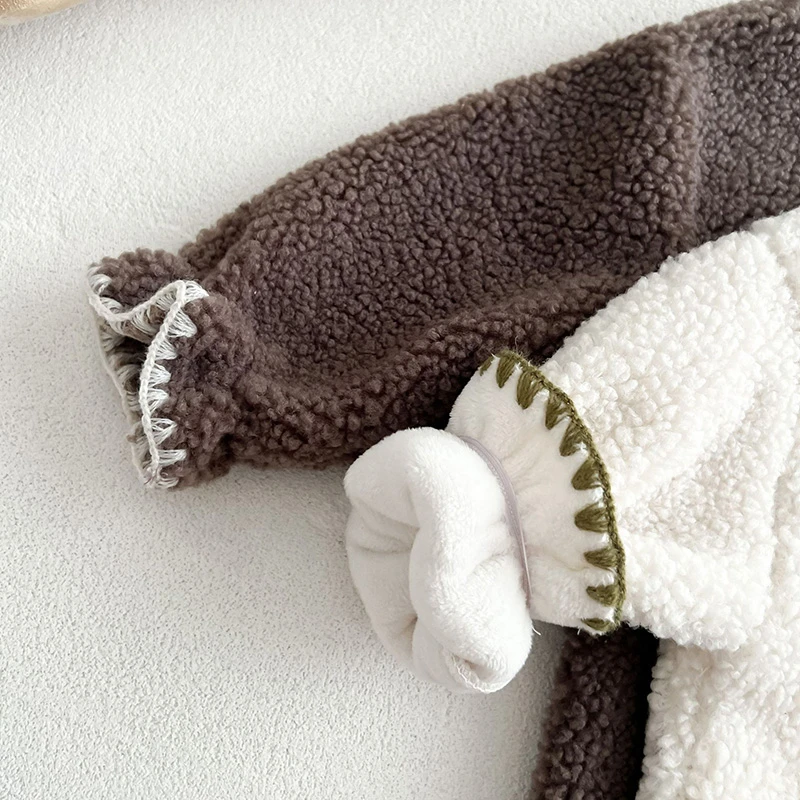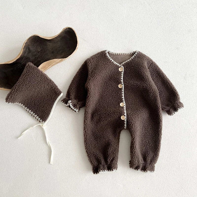 Dieser Winter Baby Romper aus Lammwolle ist der perfekte Jumpsuit für Jungen und Mädchen im Alter von 0-3 Jahren. Das Set enthält einen weichen, kuscheligen Romper und eine passende Mütze, die Ihr Baby an kalten Tagen warm hält. Der losere Schnitt sorgt für eine bequeme Passform und viel Bewegungsfreiheit. Ideal für den Winter, bietet dieser plüschige Babyanzug sowohl Stil als auch Komfort für Ihr kleines Kind. Ein absolutes Must-Have für die kalte Jahreszeit!